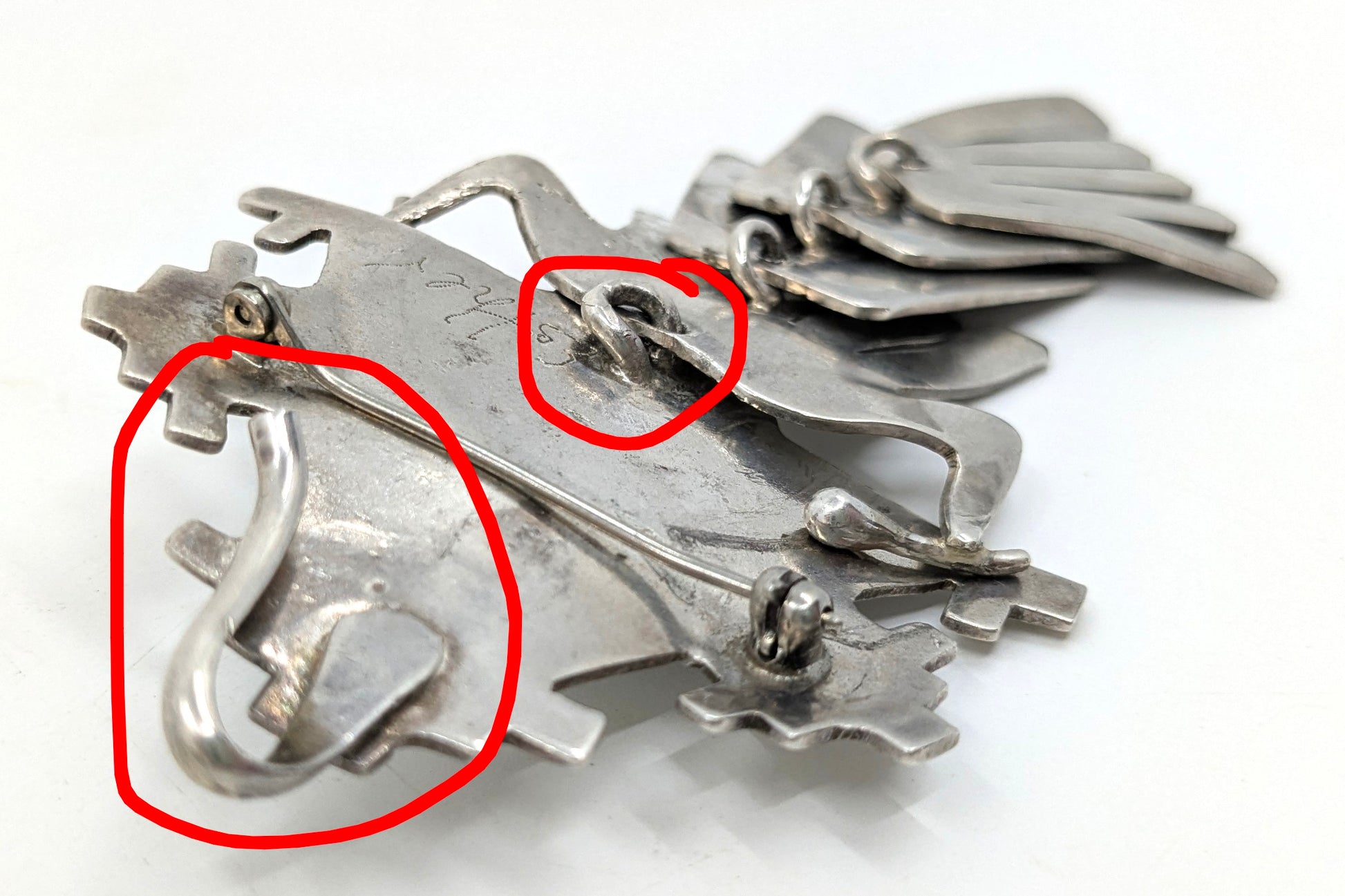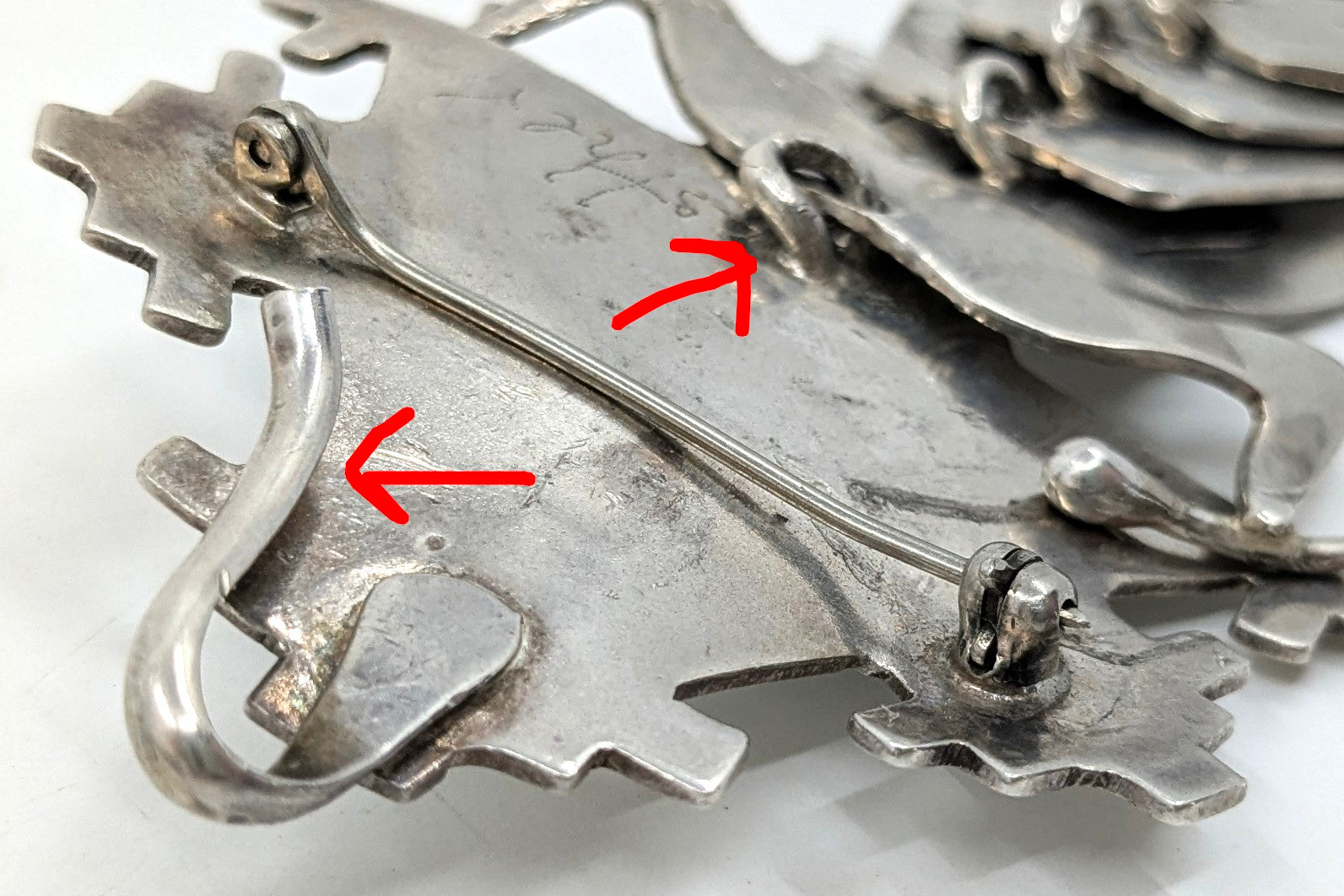 When you receive a jewelry item from us, you may notice that we do not remove the natural patina. It takes many, many years for silver to get its beautiful patina, which many collectors greatly value. Because of this, we only lightly clean items that you will find both on our website and at in-person events.