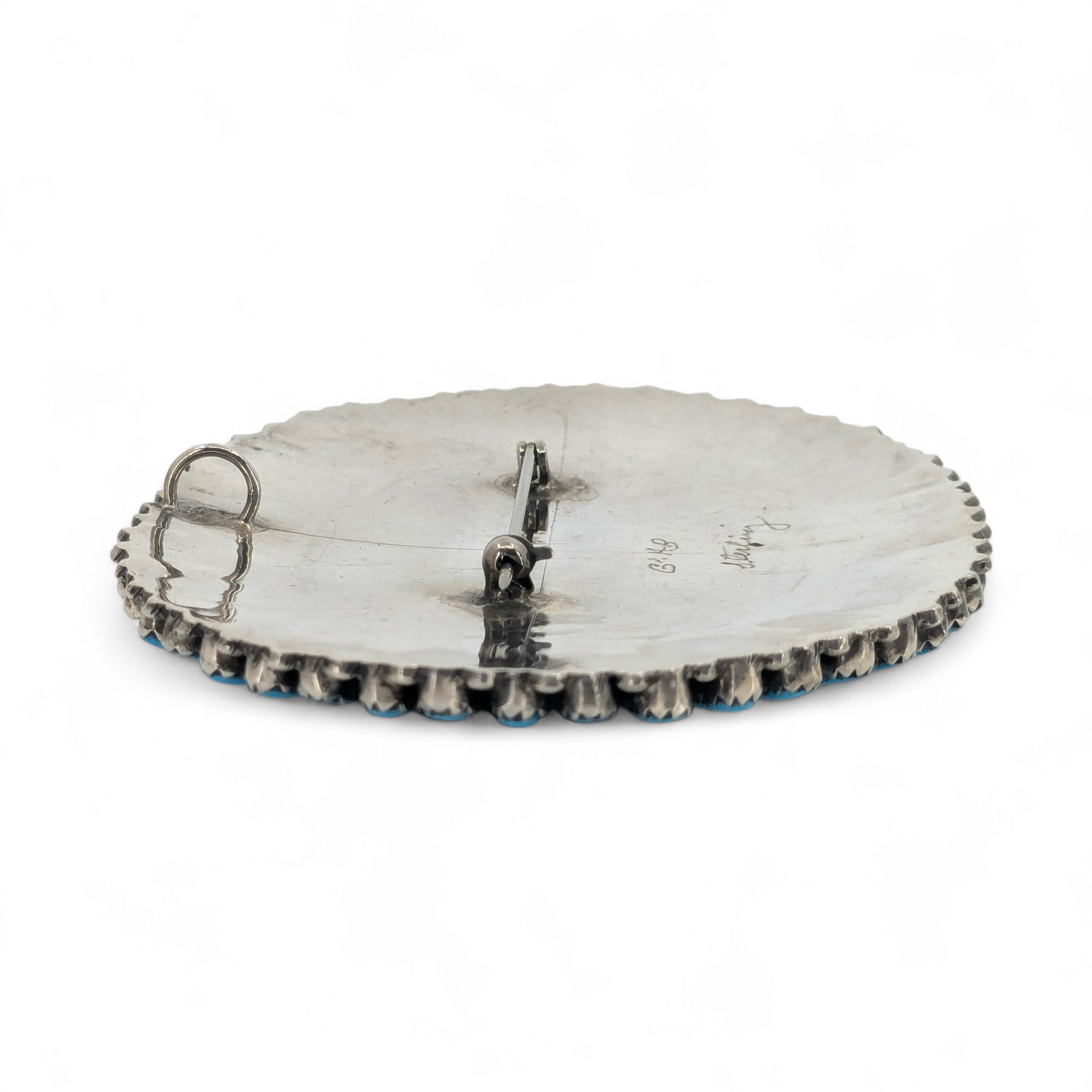 G & AB - Large Vintage Zuni Petit Point Turquoise & Sterling Pendant/Brooch