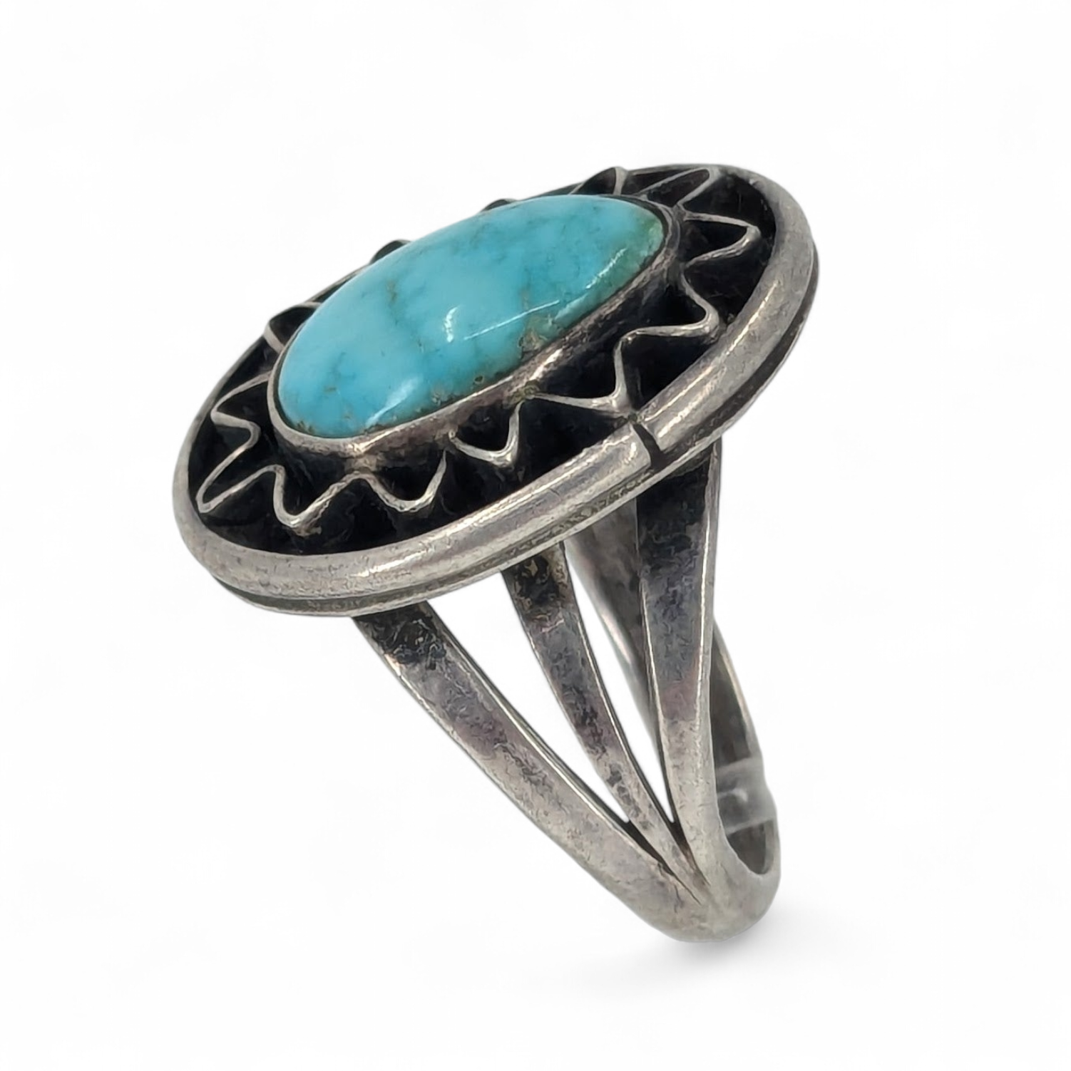 Three Hogans - Vintage Turquoise Sterling Ring, Size 6.75